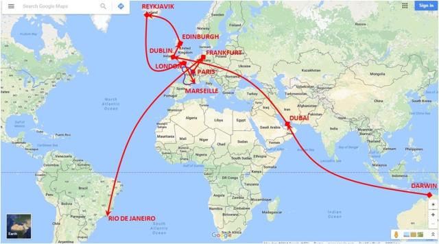 Here is a map of my trip since I left Australia, the 19th of May 2016. 27th of July 5am, I land in Rio de Janeiro. Plenty of adventures to come, plenty of people to meet, plenty of sights to see, plenty of things to do!