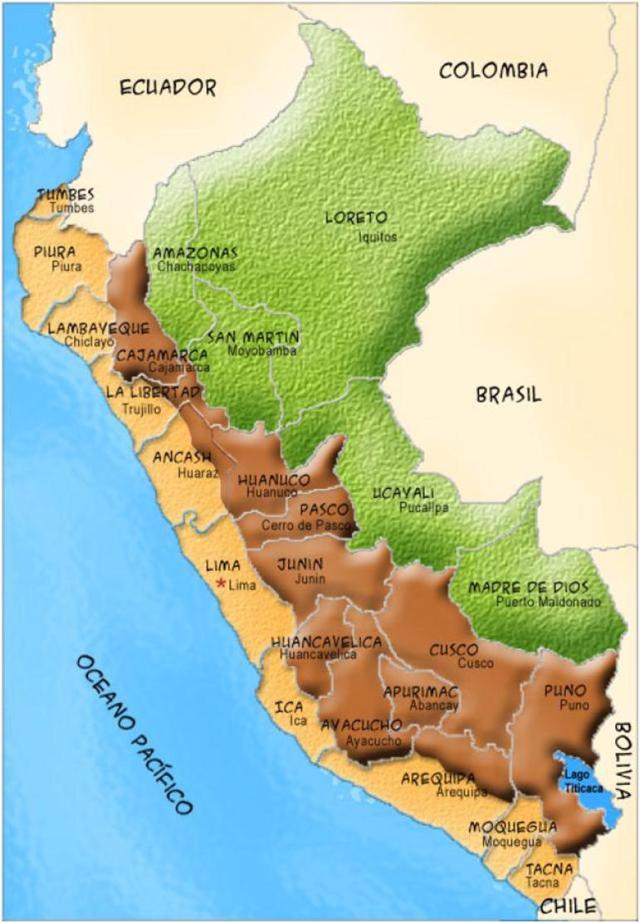 Peruvians say their country is separated in 3 geographical areas: la Costa, la Selva y la Sierra (Coast, Forrest and Mountain).