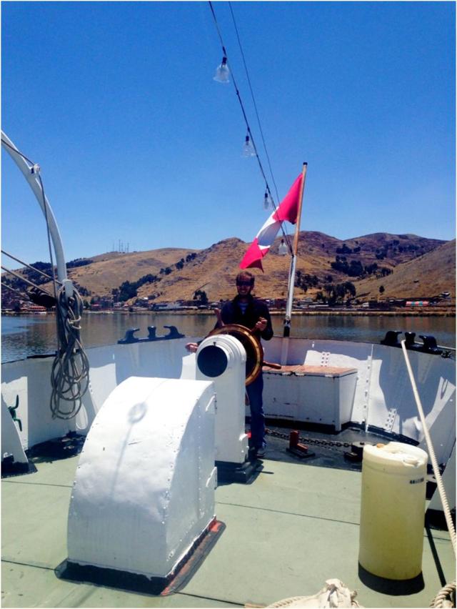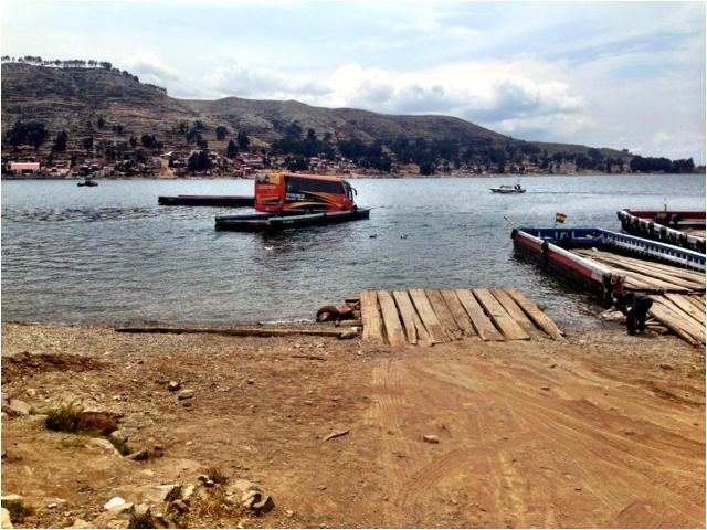 He was in Arequipa, Peru, and I was in La Paz, Bolivia. We caught up about halfway, in Puno, Peru. I left my girlfriend KLaRa, the motorbike, in La Paz. I had issues crossing the border and I did not want to risk it again. The bus trip took about 8 hours., including the crossing of the Titicaca lake on a barge: