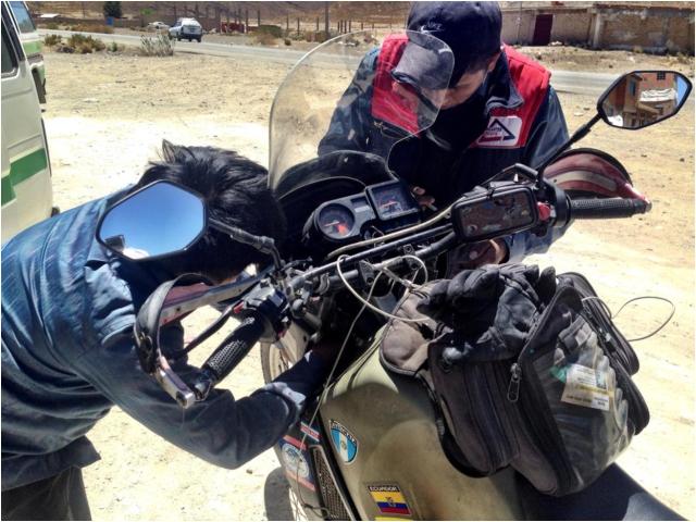 Once I stopped for lunch and when I came back, 2 Bolivians were trying to fix the front light which was slightly moving… I did not ask them anything!