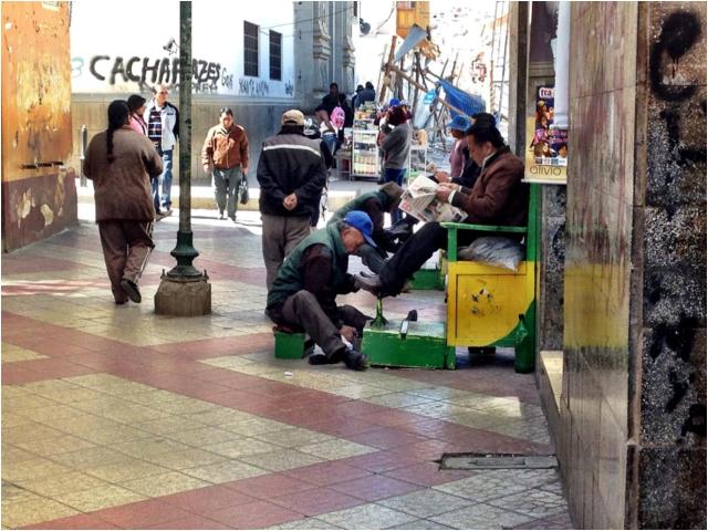 These are my last days in Bolivia. Shoe polisher is the most common job here.