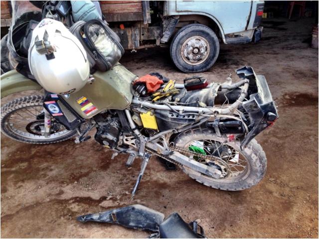 The first thing I did was to fix the frame holding the suitcases. Vibrations, shocks and extra weight broke it in 3 locations and it needed to be re-welded. Fortunately, it held all the way to Chile.