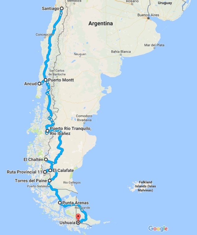 And here I am! Since Santiago, after 3 weeks, 4,500km on the road and 6 ferries, I made it to Ushuaia, the Southern most city in the World, the 10 December 2016.