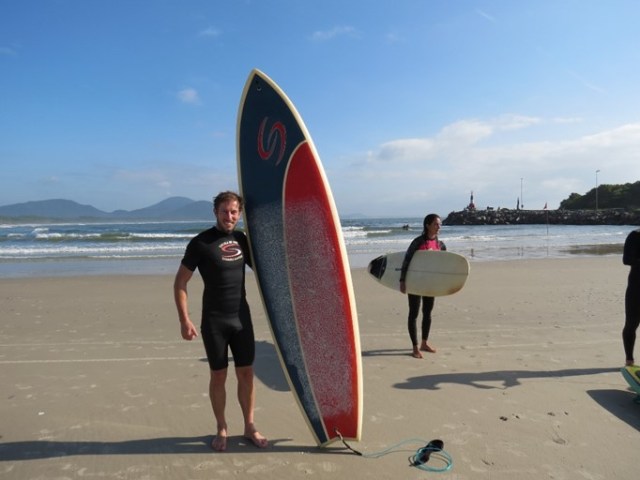 On Floripa, I was staying at the village ‘Barra da Lagoa’. I found the Surf school on internet. Evandro Santos used to be a professional competitor going around the World. A great guy!