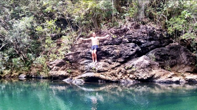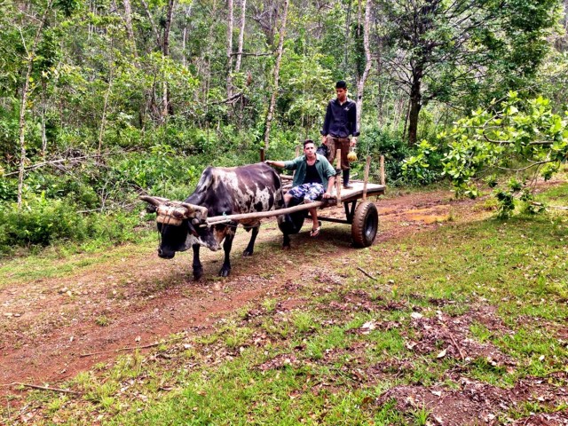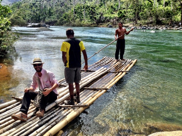 To get there, we had to cross rivers on barges or swimming: