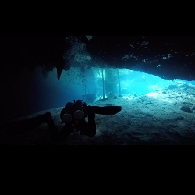 Cenote dive, in one of the numerous caves of the region. They were formed by a meteorite millions years ago: