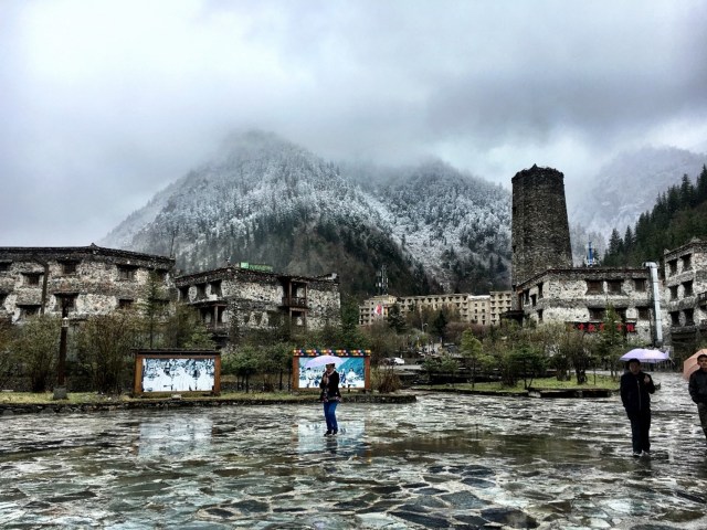The city where we stayed at is called Jiuzhaigou. After Brasil, Cuba and Mexico, I was not expecting such a cold weather at the beginning of the Summer. We did not do much the first day due to a poor weather: rain and snow.