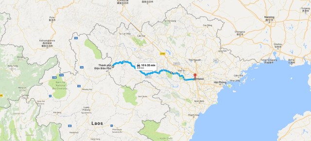 It is a 10 hours over night bus trip from Hanoit to Dien bien Phu, near the border with Laos. Very uncomfortable, I took a plane on the way back!